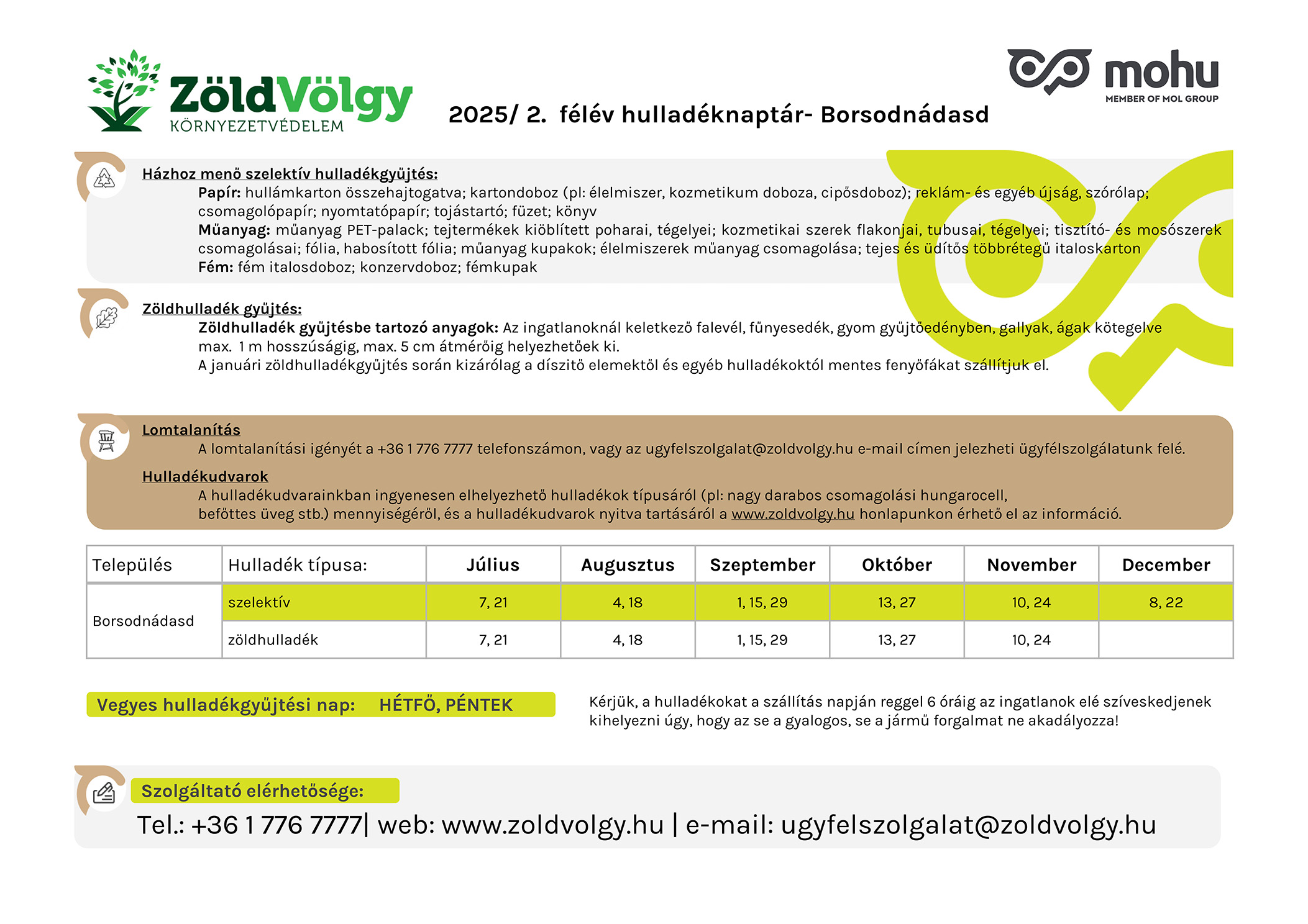 2025/2.félév Hulladéknaptár módosítás Borsodnádasd
