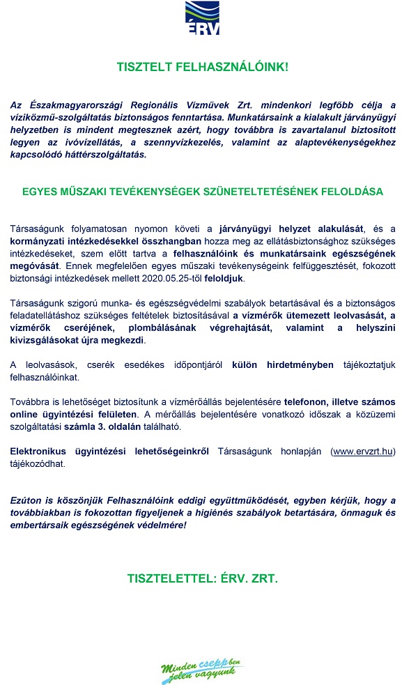 Nyomatékosan fel szeretném hívni a figyelmet, hogy a veszély még teljesen nem múlt el, a továbbiakban is óvatosnak kell lennünk! Bizonyos megszorításokra még szükség van, ébereknek kell lennünk, de lassan, óvatosan újraindulhat az élet. Kérem figyeljék az országos híradásokat, instrukciókat és annak megfelelően járjanak el!