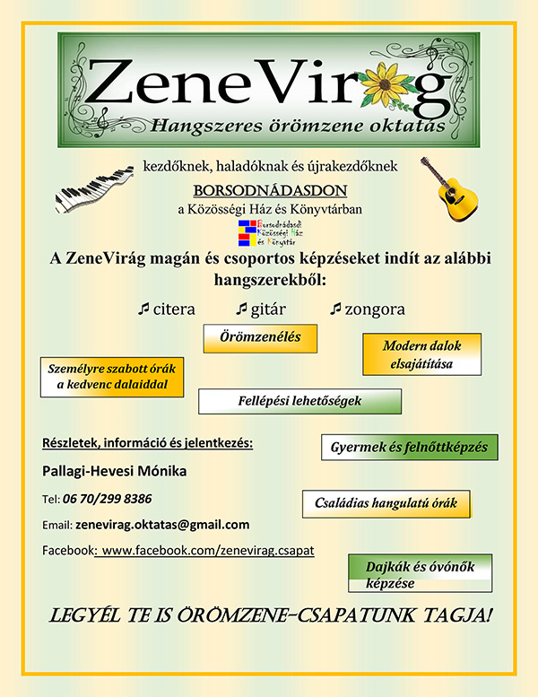 Zene Virág - Hangszeres örömzene oktatás Borsodnádasdon