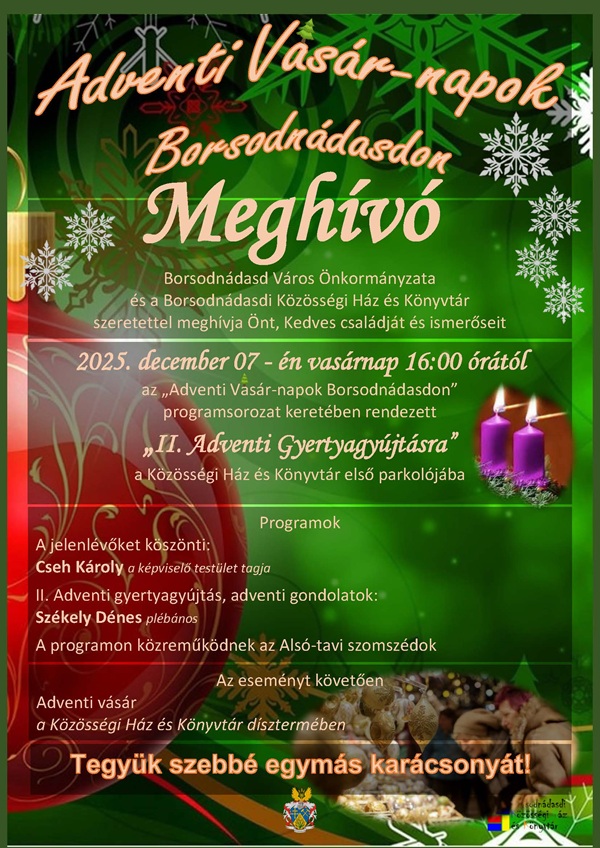 Borsodnádasd Város Önkormányzata az idei évben is csatlakozott a Bursa Hungarica felsőoktatási ösztöndíjrendszerhez és ezennel kiírja 2026. évre a Bursa Hungarica Felsőoktatási Önkormányzati Ösztöndíjpályázatot felsőoktatásban tanulmányokat folytató hallgatók számára. Önkormányzatunk ezzel ösztöndíj elnyerésére ad lehetőséget, a hátrányos szociális helyzetű – nappali tagozaton tanuló – egyetemi, főiskolai hallgatók számára. A pályázat benyújtása regisztrációhoz kötött, melynek elérése: