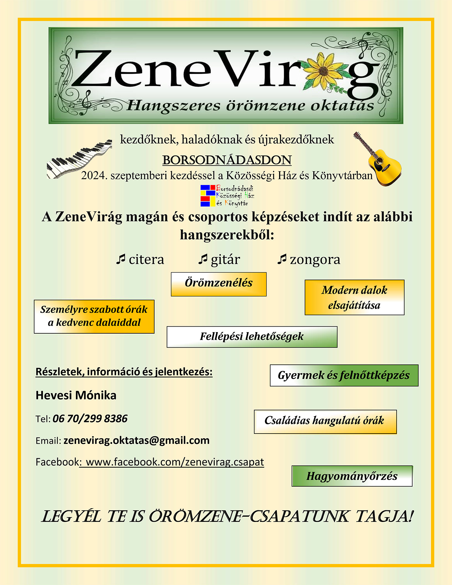 Zene Virág - Hangszeres örömzene oktatás Borsodnádasdon