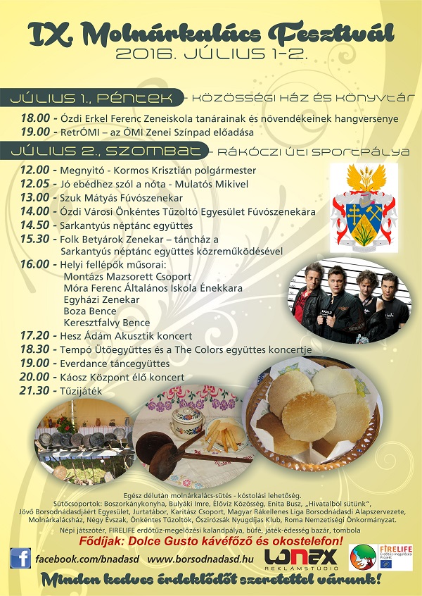 Tájékoztatjuk a Tisztelt Lakosságot, hogy a „Nádasdi molnárkalács” 2016. június 15-től már papírdobozos változatban is kapható. Egy doboz 30 db molnárkalácsot tartalmaz és 800 forint a fogyasztói ára. Továbbra is szeretettel várjuk régi és új vásárlóinkat a megszokott helyen és időben!