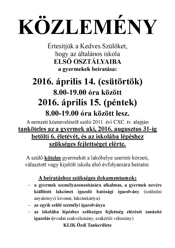 Értesítjük a Tisztelt Lakosságot, hogy az ebek 2016. évi veszettség elleni kötelező, szervezett védőoltására Borsodnádasd Város közigazgatási területén a következő helyen és időpontban kerül sor: