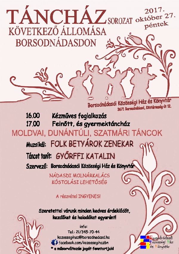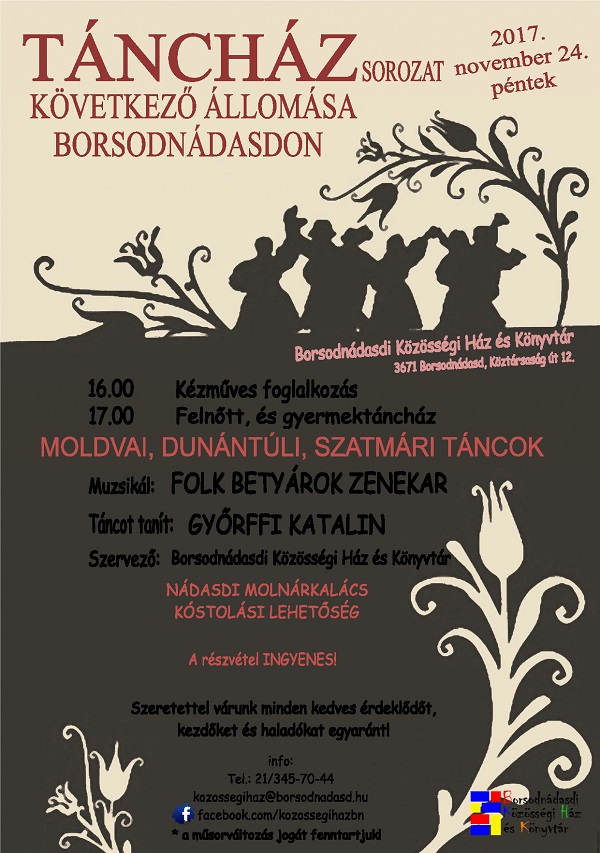 Helyszín: Borsodnádasdi Közösségi Ház és Könyvtár (3671 Borsodnádasd, Köztársaság út 12.)