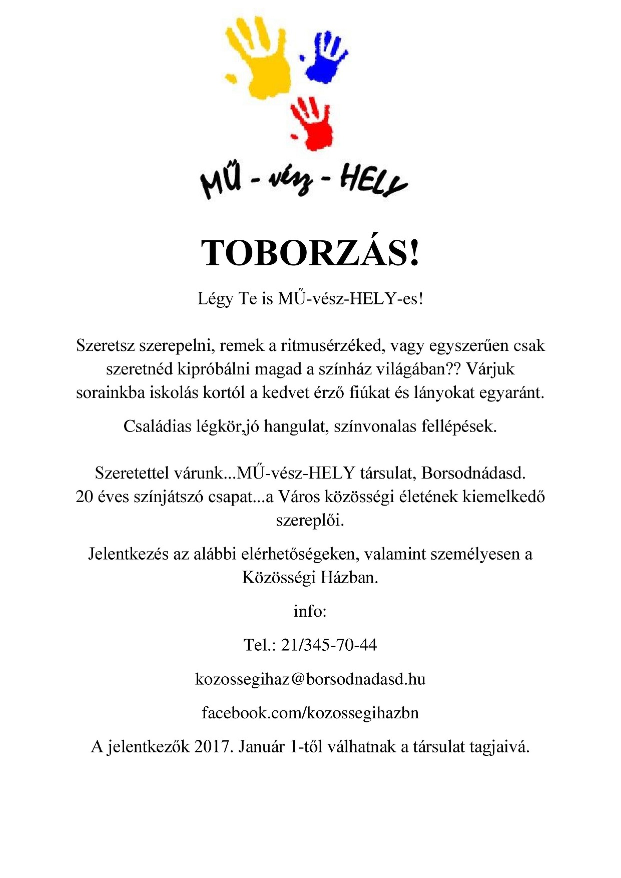Tájékoztatjuk a Tisztelt Ügyfeleket, hogy a Borsodnádasd Város Önkormányzata Képviselő-testületének 113/2016.(XII.15.) számú határozata alapján a