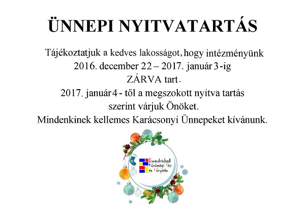 2016. december 6-a (kedd) 13.30 órától 15.30 óráig.