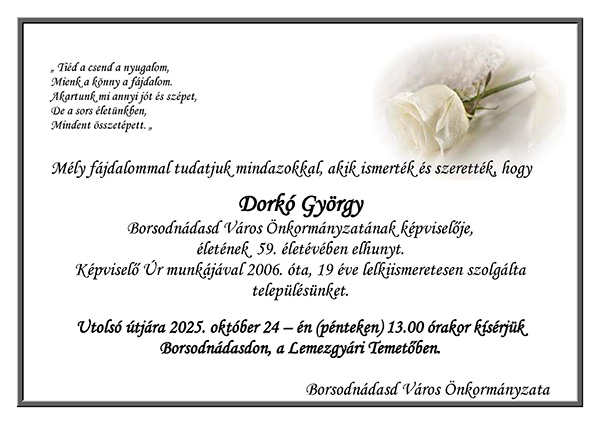 Az állatok védelméről és kíméletéről szóló 1998. évi XXVIII. törvény 42/B. § (1) bekezdése alapján Borsodnádasd Város Önkormányzata - ebrendészeti feladatainak ellátása érdekében, illetve a veszettség elleni oltás járványvédelmi vonatkozásaira tekintettel - Borsodnádasd város területén 2025. július 1-től – 2025. július 31-ig terjedő időszakban Borsodnádasd város közigazgatási területén tartott ebek vonatkozásában ebösszeírást végez.