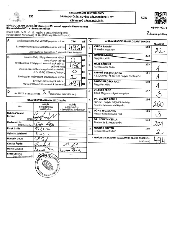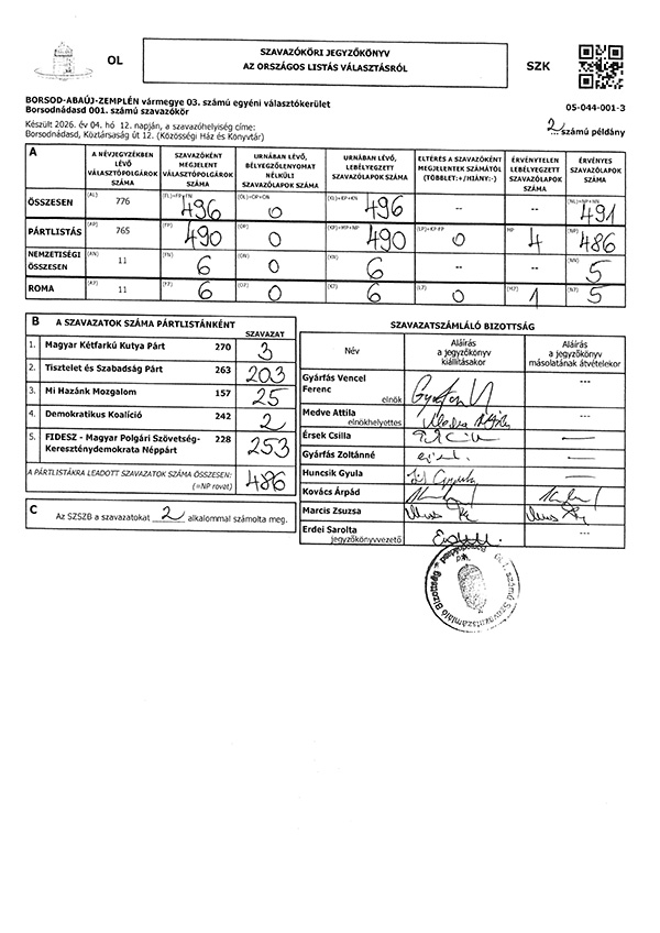 Listás szavazóköri jegyzőkönyv