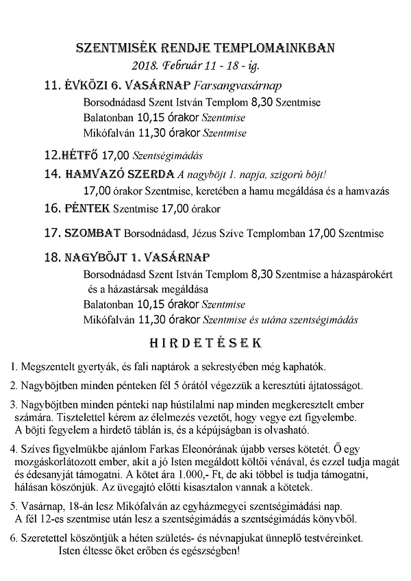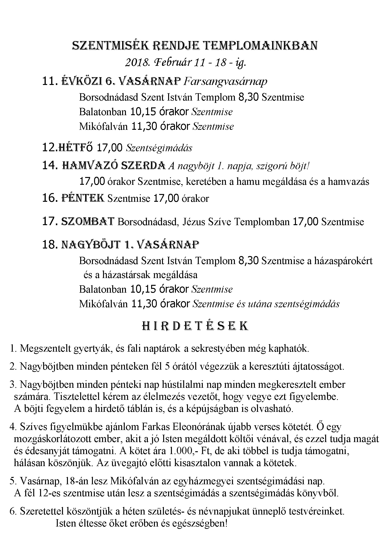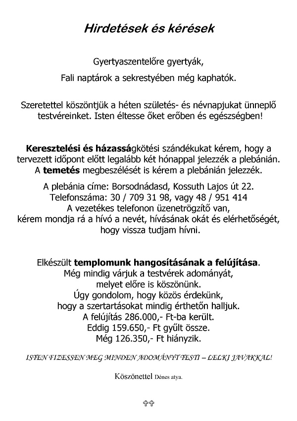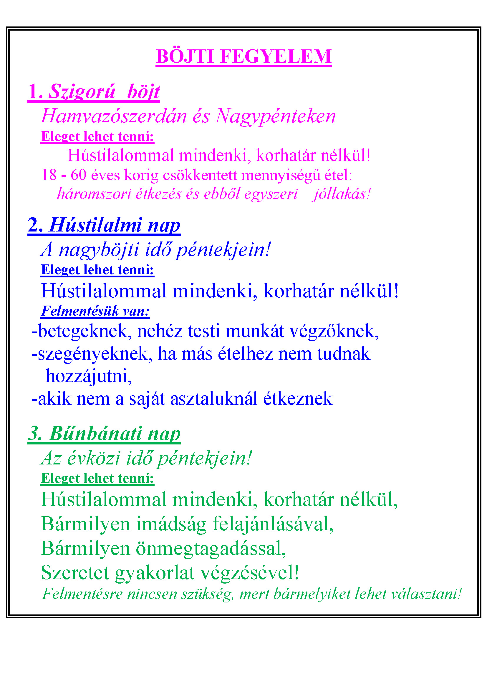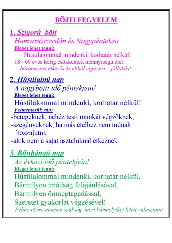 Ön itt van: Home Városunk Egyház Aktuális hírek Heti miserend és hirdetés, Böjti Fegyelem